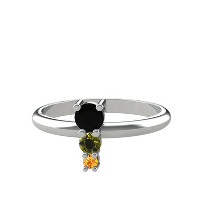 Siyah zirkon, peridot ve sitrin 8 ayar beyaz altın yüzük