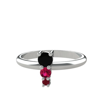 Siyah zirkon, rodolit garnet ve kök yakut 18 ayar beyaz altın yüzük