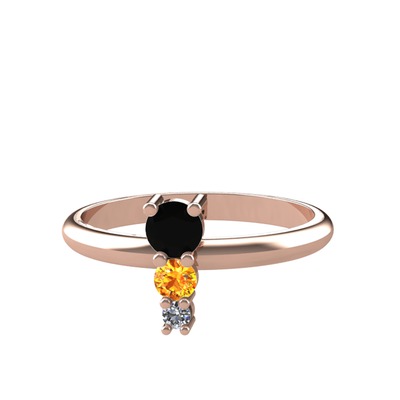 Siyah zirkon, sitrin ve pırlanta 14 ayar rose altın yüzük (0.036 karat)