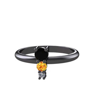 Siyah zirkon, sitrin ve pırlanta 925 ayar siyah rodyum kaplama gümüş yüzük (0.036 karat)