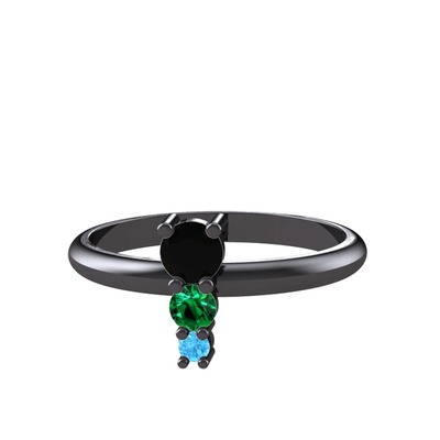 Siyah zirkon, yeşil kuvars ve akuamarin 925 ayar siyah rodyum kaplama gümüş yüzük