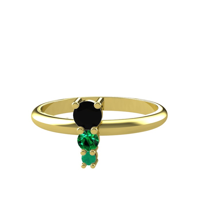 Siyah zirkon, yeşil kuvars ve kök zümrüt 14 ayar altın yüzük