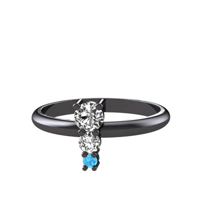 Swarovski ve akuamarin 925 ayar siyah rodyum kaplama gümüş yüzük