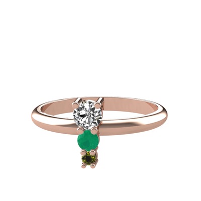 Swarovski, kök zümrüt ve peridot 925 ayar rose altın kaplama gümüş yüzük