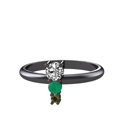 Swarovski, kök zümrüt ve peridot 925 ayar siyah rodyum kaplama gümüş yüzük