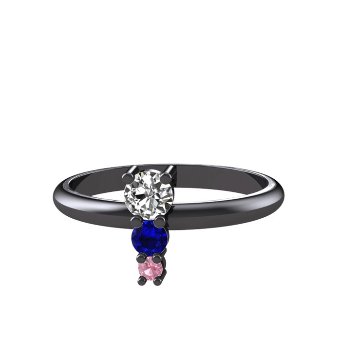 Swarovski, lab safir ve pembe kuvars 925 ayar siyah rodyum kaplama gümüş yüzük