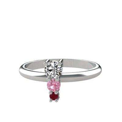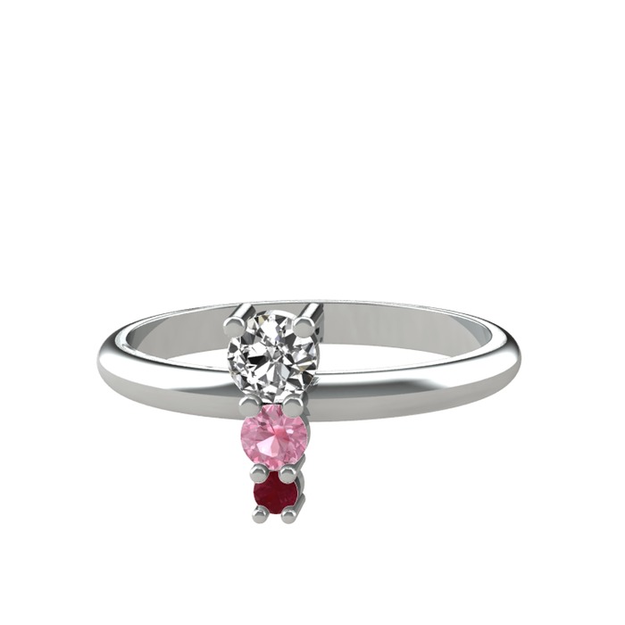 Swarovski, pembe kuvars ve kök yakut 18 ayar beyaz altın yüzük