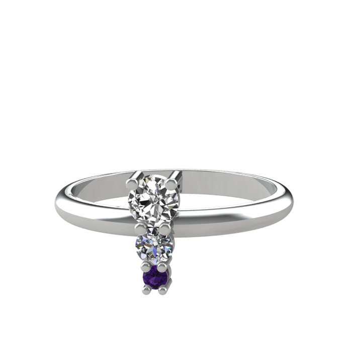 Swarovski, pırlanta ve ametist 8 ayar beyaz altın yüzük (0.11 karat)
