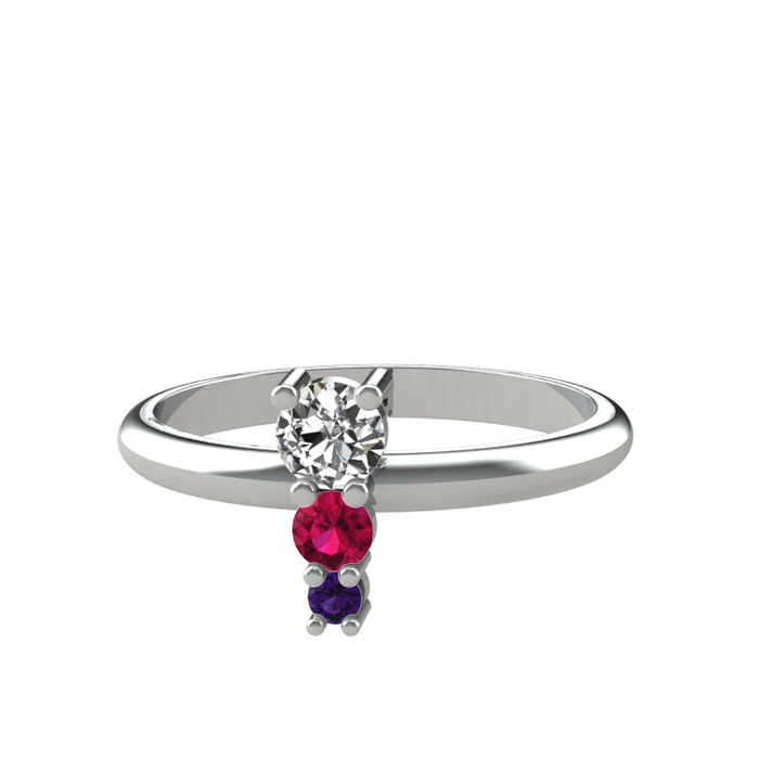 Swarovski, rodolit garnet ve ametist 8 ayar beyaz altın yüzük
