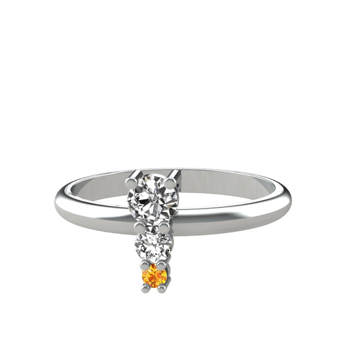 Swarovski ve sitrin 8 ayar beyaz altın yüzük
