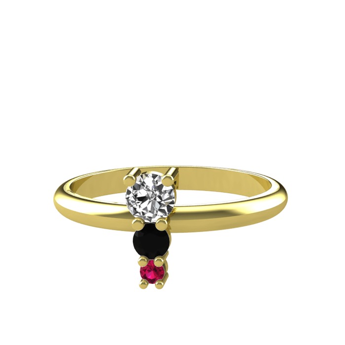 Swarovski, siyah zirkon ve rodolit garnet 8 ayar altın yüzük