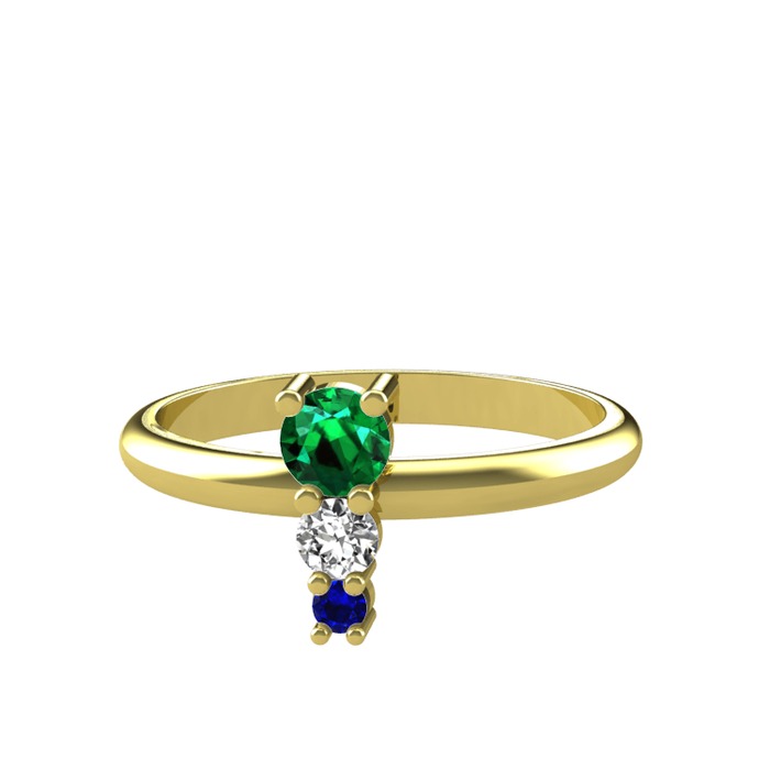 Yeşil kuvars, beyaz zirkon ve lab safir 18 ayar altın yüzük