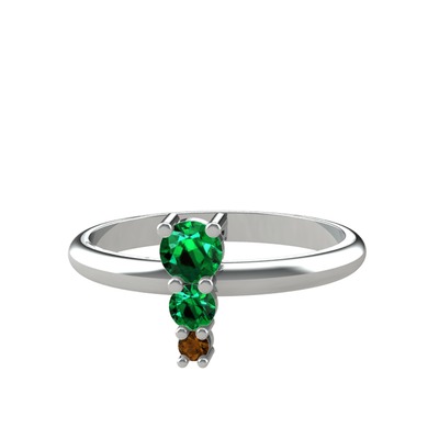 Yeşil kuvars ve dumanlı kuvars 18 ayar beyaz altın yüzük