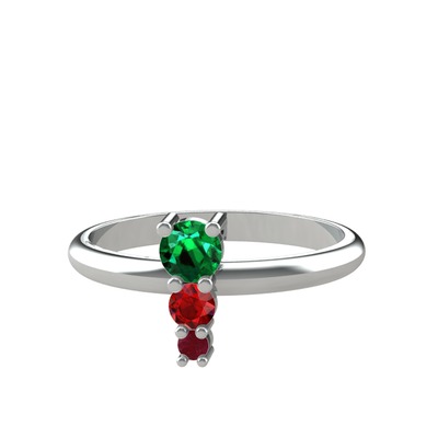 Yeşil kuvars, garnet ve kök yakut 8 ayar beyaz altın yüzük