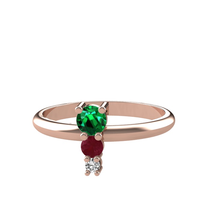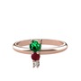 Yeşil kuvars, kök yakut ve beyaz zirkon 14 ayar rose altın yüzük