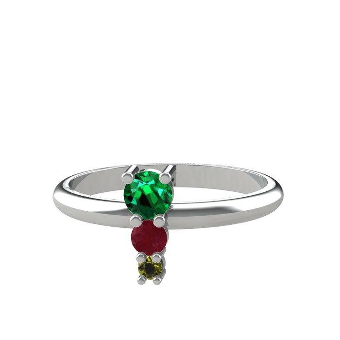 Yeşil kuvars, kök yakut ve peridot 18 ayar beyaz altın yüzük
