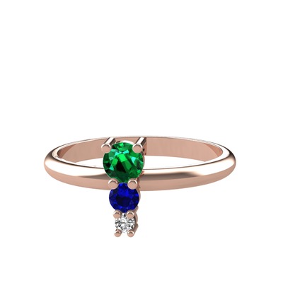 Yeşil kuvars, lab safir ve beyaz zirkon 14 ayar rose altın yüzük