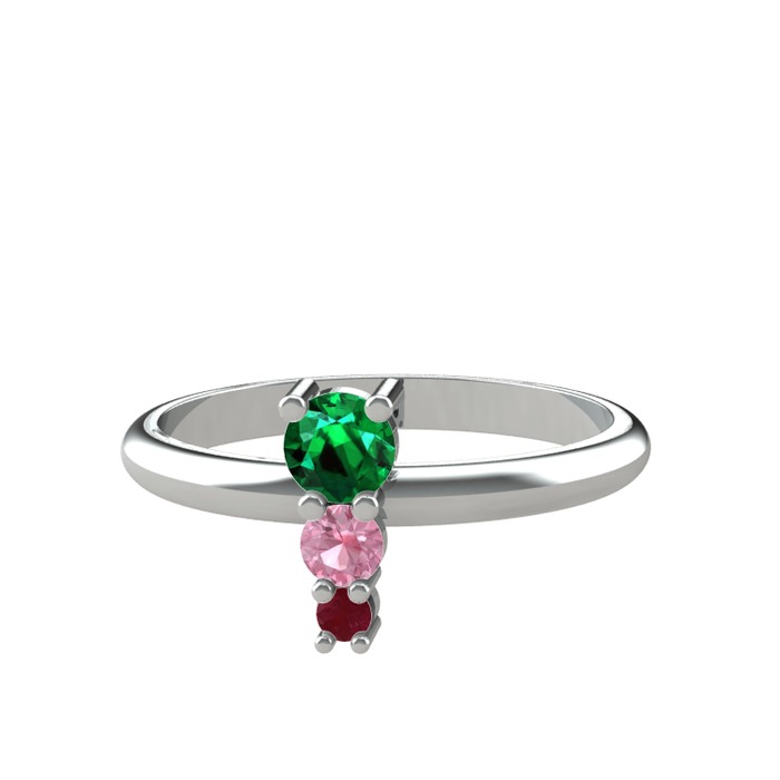 Yeşil kuvars, pembe kuvars ve kök yakut 18 ayar beyaz altın yüzük