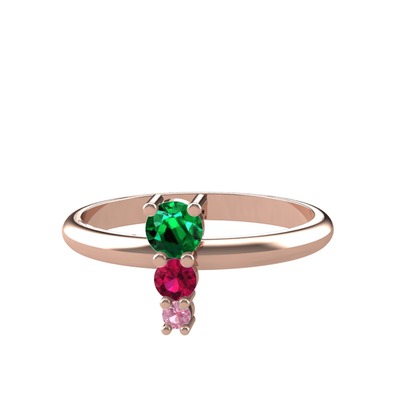 Yeşil kuvars, rodolit garnet ve pembe kuvars 18 ayar rose altın yüzük