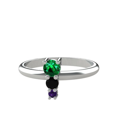 Yeşil kuvars, siyah zirkon ve ametist 925 ayar gümüş yüzük