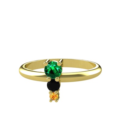 Yeşil kuvars, siyah zirkon ve sitrin 8 ayar altın yüzük