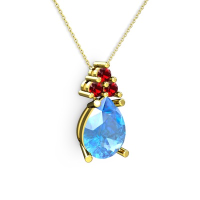 Akuamarin ve garnet 925 ayar altın kaplama gümüş kolye (40 cm gümüş rolo zincir)