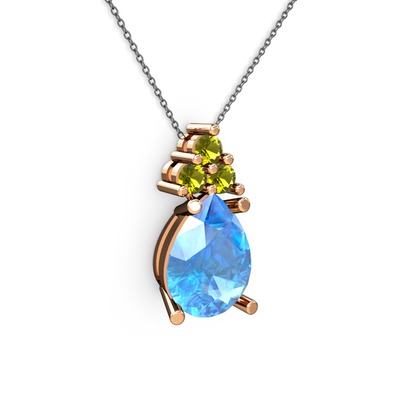 Akuamarin ve peridot 925 ayar rose altın kaplama gümüş kolye (40 cm gümüş rolo zincir)