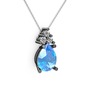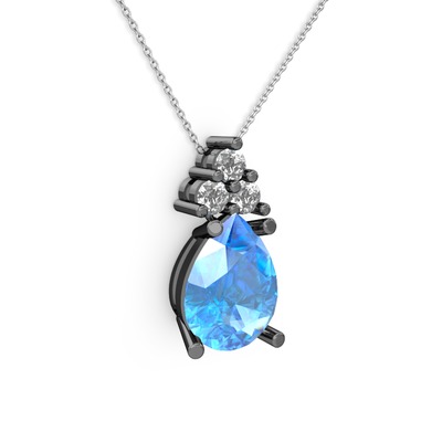 Akuamarin ve pırlanta 925 ayar siyah rodyum kaplama gümüş kolye (0.72 karat, 40 cm beyaz altın rolo zincir)
