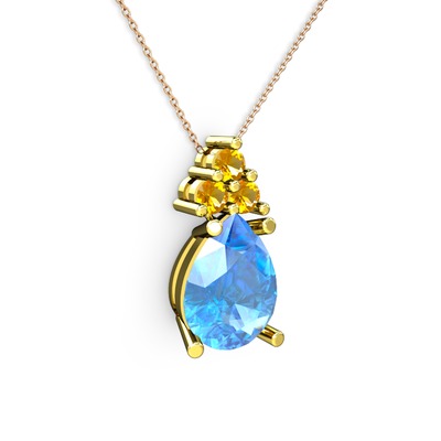 Akuamarin ve sitrin 8 ayar altın kolye (40 cm rose altın rolo zincir)