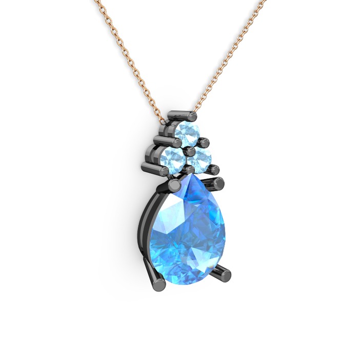 Akuamarin 925 ayar siyah rodyum kaplama gümüş kolye (40 cm rose altın rolo zincir)