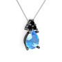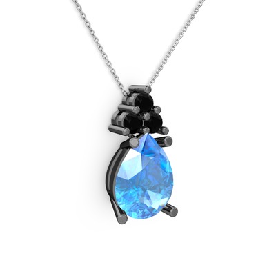 Akuamarin ve siyah zirkon 925 ayar siyah rodyum kaplama gümüş kolye (40 cm beyaz altın rolo zincir)