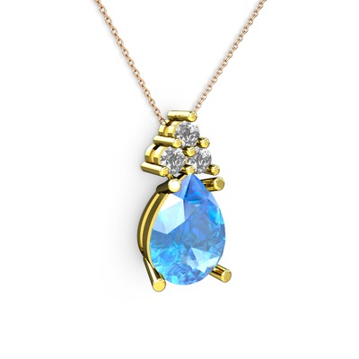 Akuamarin ve swarovski 18 ayar altın kolye (40 cm rose altın rolo zincir)