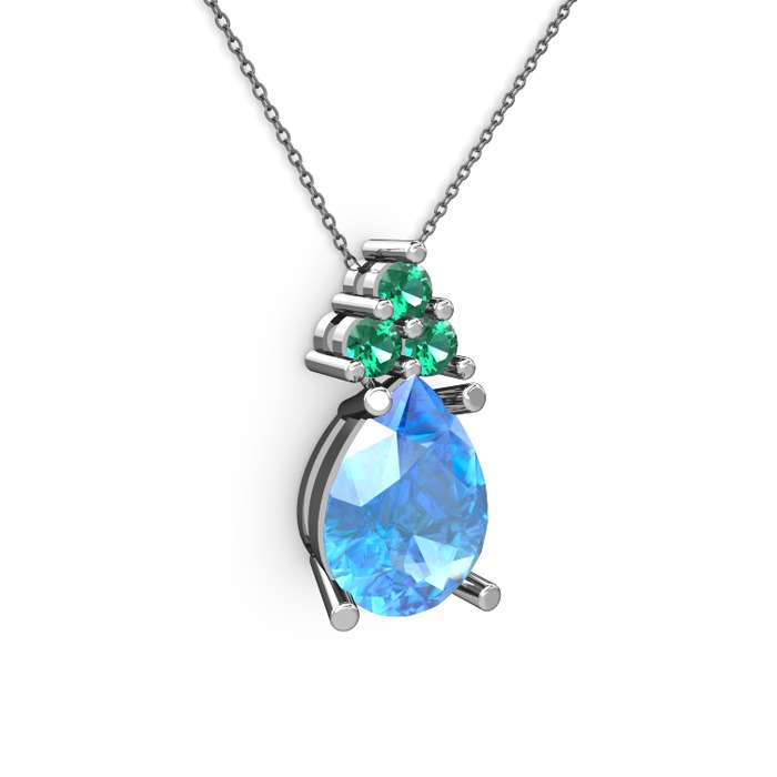 Akuamarin ve yeşil kuvars 18 ayar beyaz altın kolye (40 cm gümüş rolo zincir)