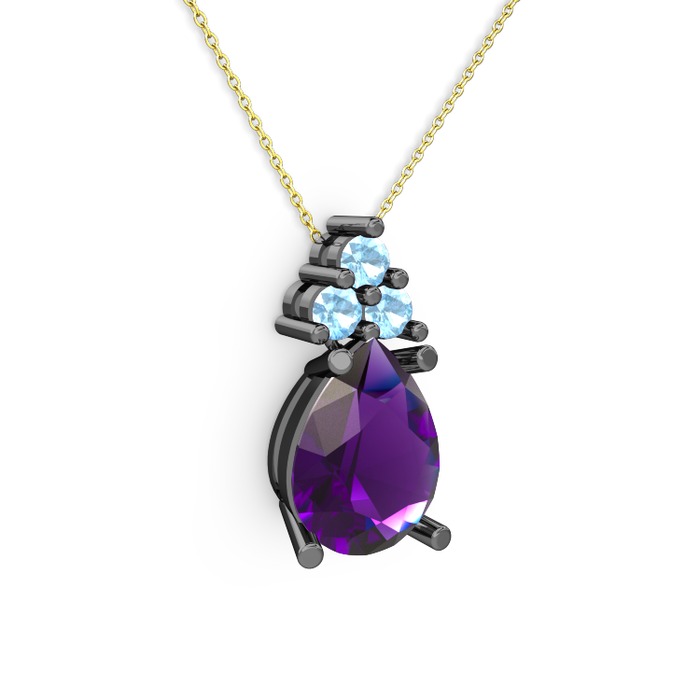 Ametist ve akuamarin 925 ayar siyah rodyum kaplama gümüş kolye (40 cm altın rolo zincir)