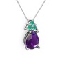 Ametist ve kök zümrüt 18 ayar beyaz altın kolye (40 cm gümüş rolo zincir)