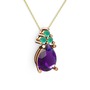 Ametist ve kök zümrüt 925 ayar rose altın kaplama gümüş kolye (40 cm altın rolo zincir)