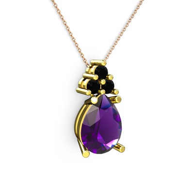 Ametist ve siyah zirkon 14 ayar altın kolye (40 cm rose altın rolo zincir)