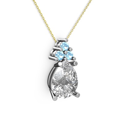Beyaz zirkon ve akuamarin 18 ayar beyaz altın kolye (40 cm altın rolo zincir)