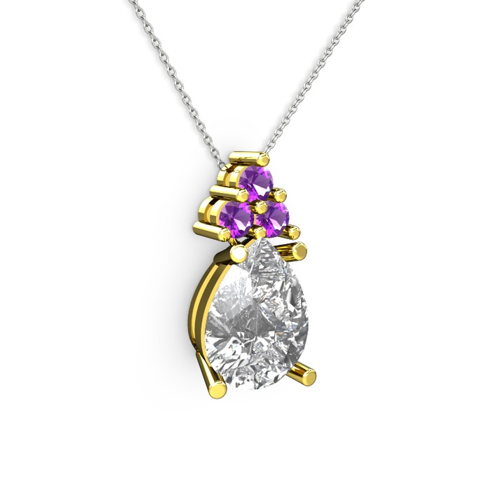 Beyaz zirkon ve ametist 925 ayar altın kaplama gümüş kolye (40 cm beyaz altın rolo zincir)