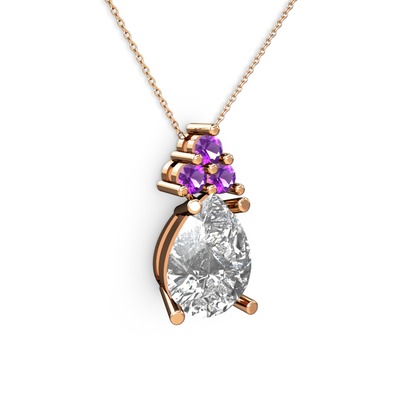 Beyaz zirkon ve ametist 925 ayar rose altın kaplama gümüş kolye (40 cm gümüş rolo zincir)
