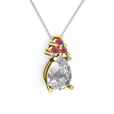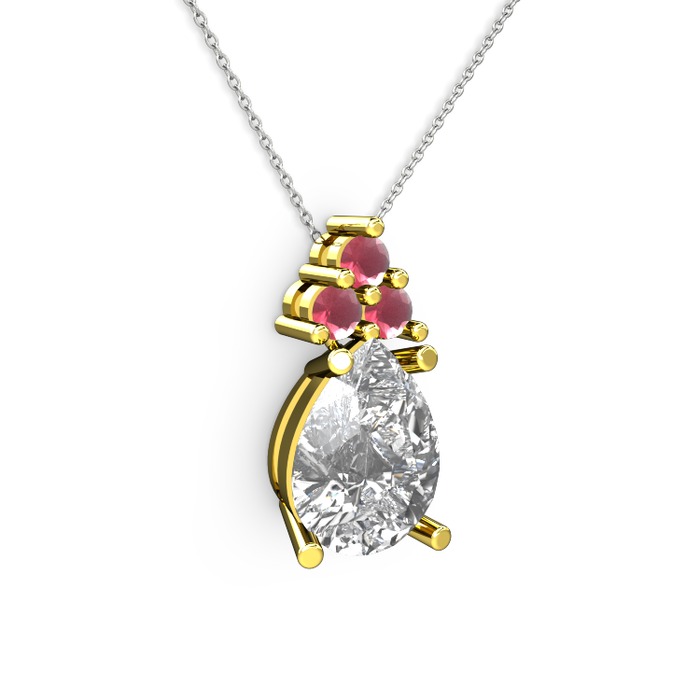 Beyaz zirkon ve kök yakut 925 ayar altın kaplama gümüş kolye (40 cm beyaz altın rolo zincir)
