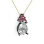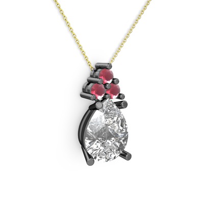 Beyaz zirkon ve kök yakut 925 ayar siyah rodyum kaplama gümüş kolye (40 cm altın rolo zincir)