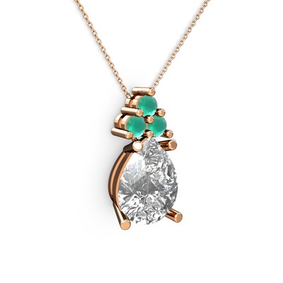 Beyaz zirkon ve kök zümrüt 18 ayar rose altın kolye (40 cm rose altın rolo zincir)