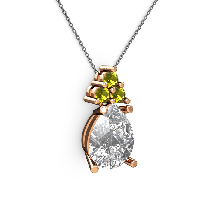 Beyaz zirkon ve peridot 18 ayar rose altın kolye (40 cm gümüş rolo zincir)