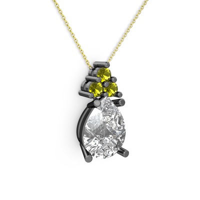 Beyaz zirkon ve peridot 925 ayar siyah rodyum kaplama gümüş kolye (40 cm altın rolo zincir)