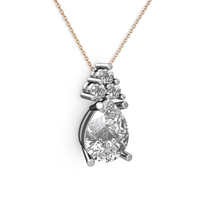 Beyaz zirkon ve pırlanta 925 ayar gümüş kolye (0.72 karat, 40 cm rose altın rolo zincir)