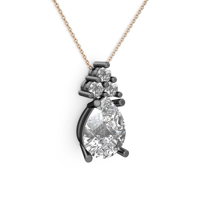 Beyaz zirkon ve pırlanta 925 ayar siyah rodyum kaplama gümüş kolye (0.72 karat, 40 cm rose altın rolo zincir)