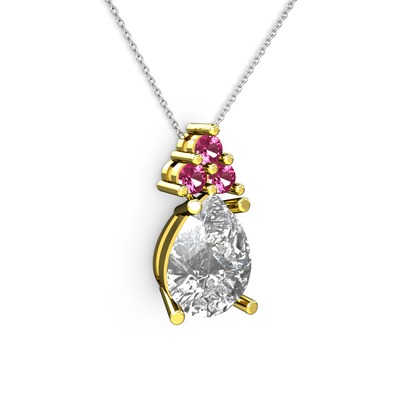 Beyaz zirkon ve rodolit garnet 18 ayar altın kolye (40 cm beyaz altın rolo zincir)