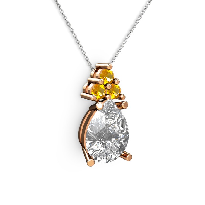 Beyaz zirkon ve sitrin 925 ayar rose altın kaplama gümüş kolye (40 cm beyaz altın rolo zincir)
