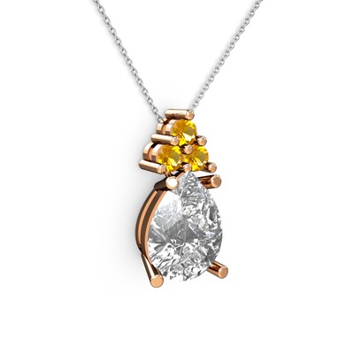 Beyaz zirkon ve sitrin 925 ayar rose altın kaplama gümüş kolye (40 cm beyaz altın rolo zincir)